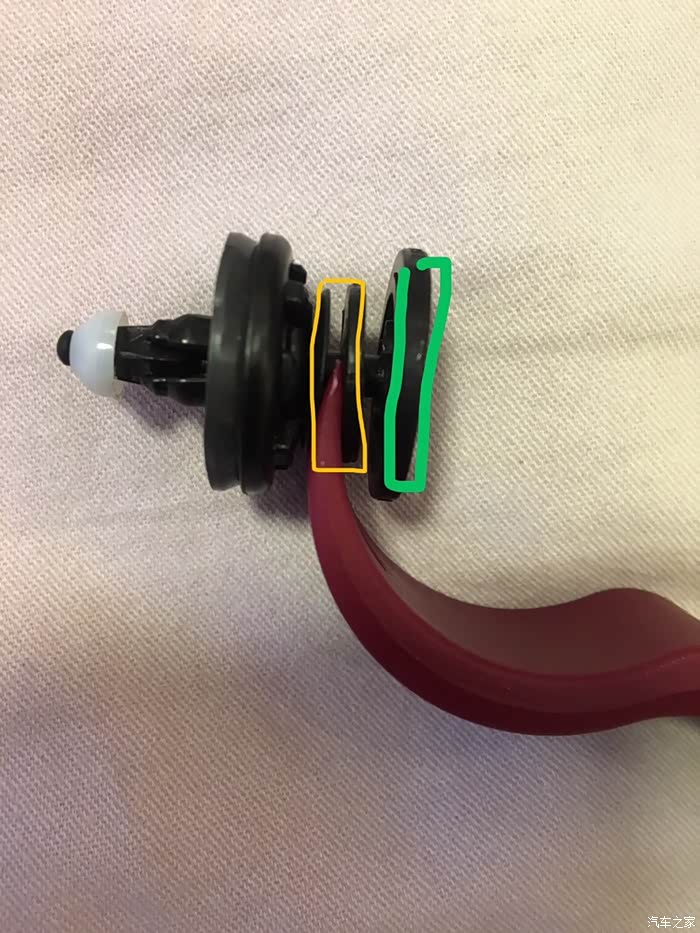 黄色位置是翘板插入的位置,绿色那个是固定在塑料门板上的。
