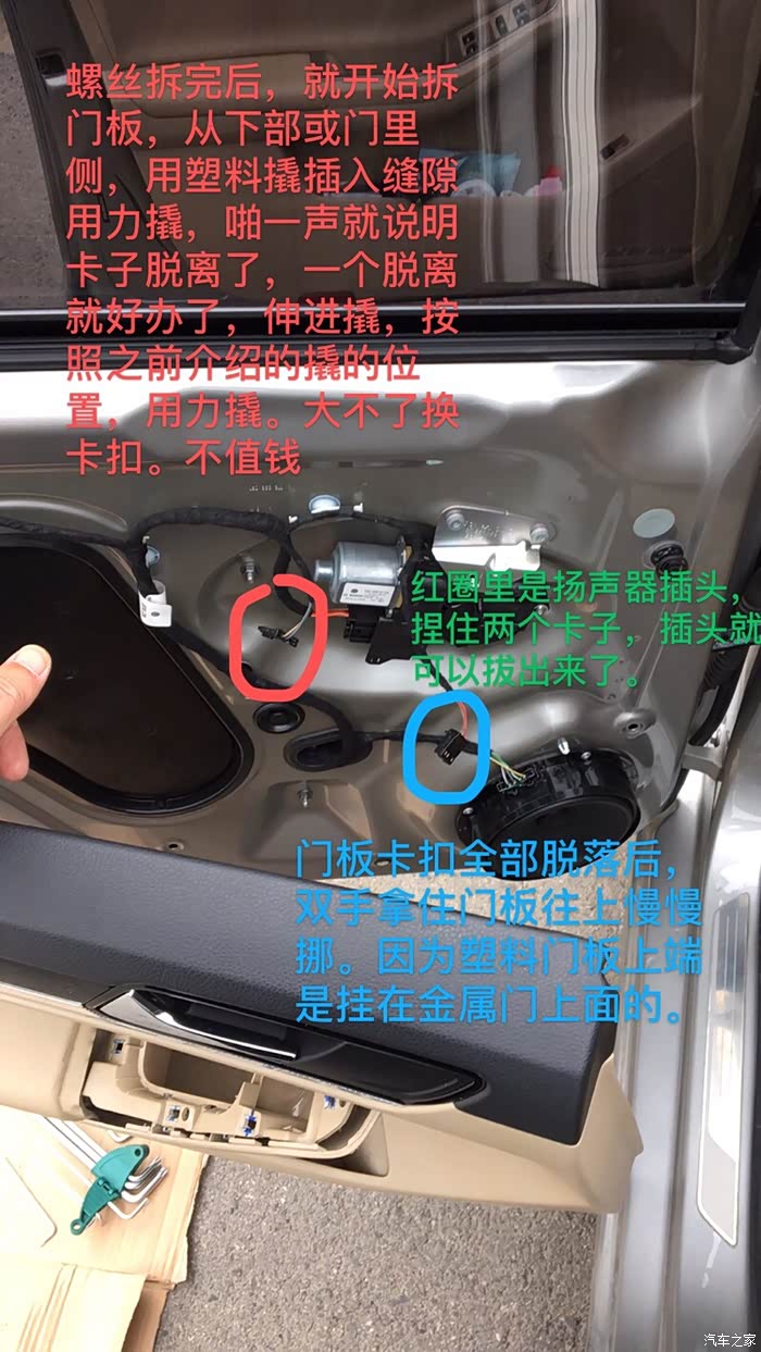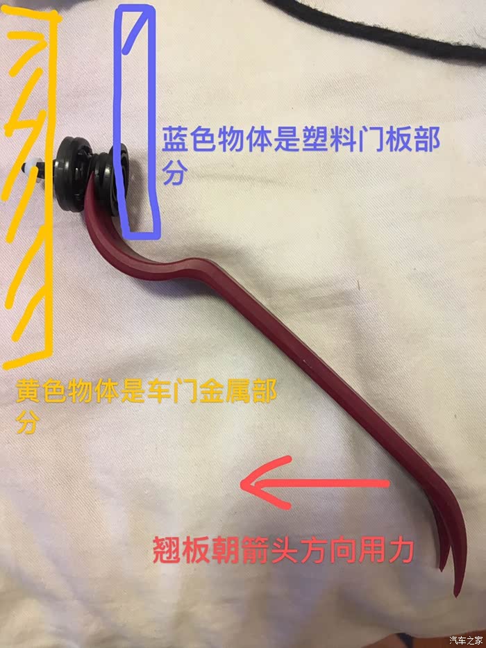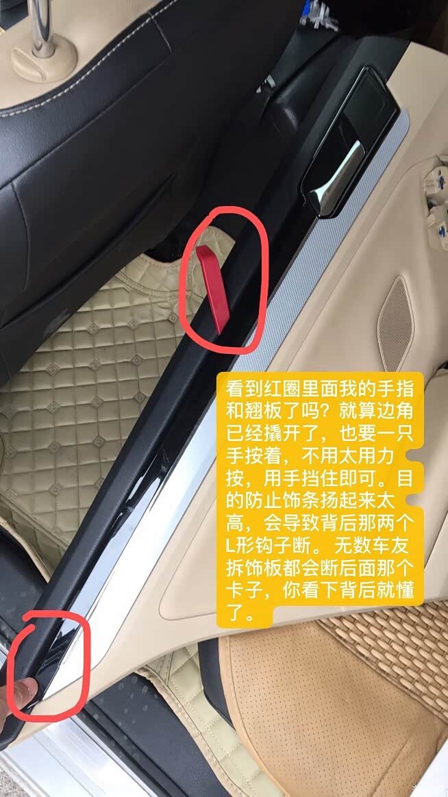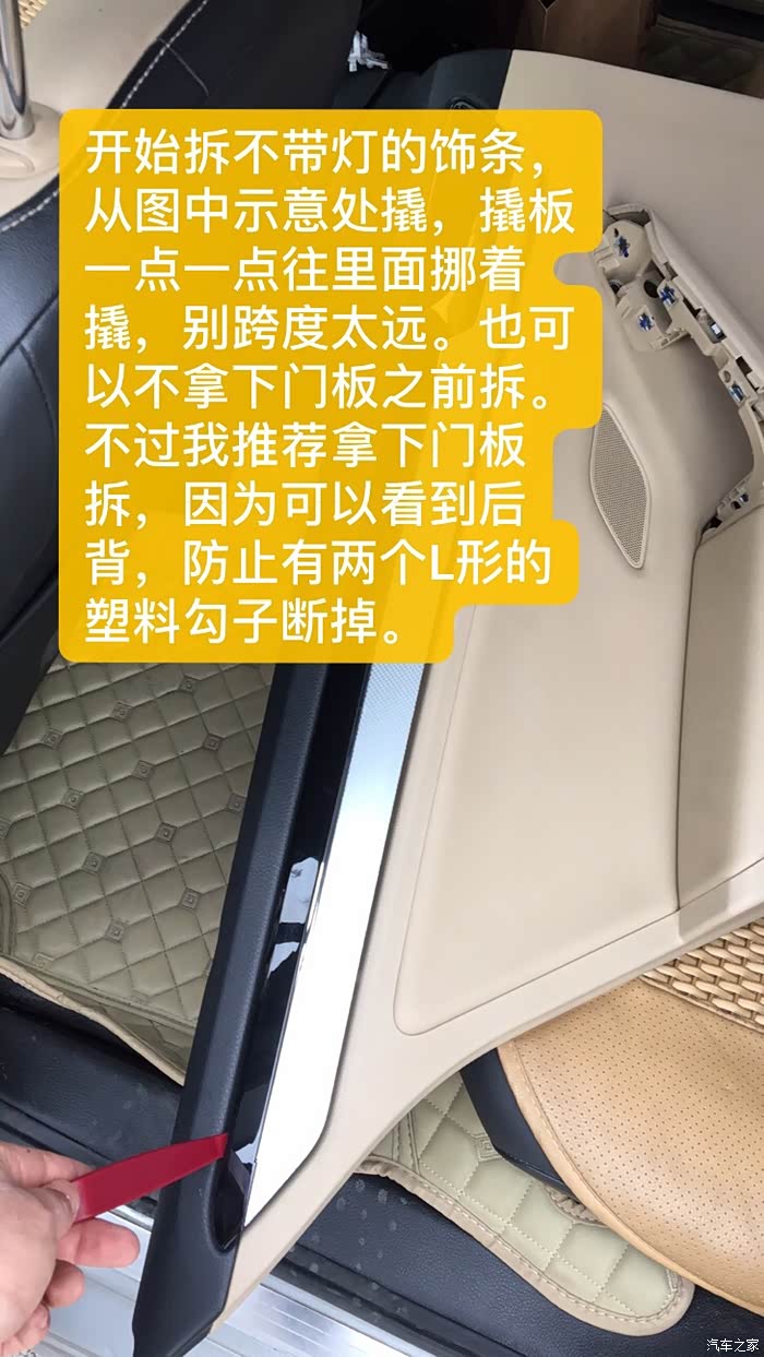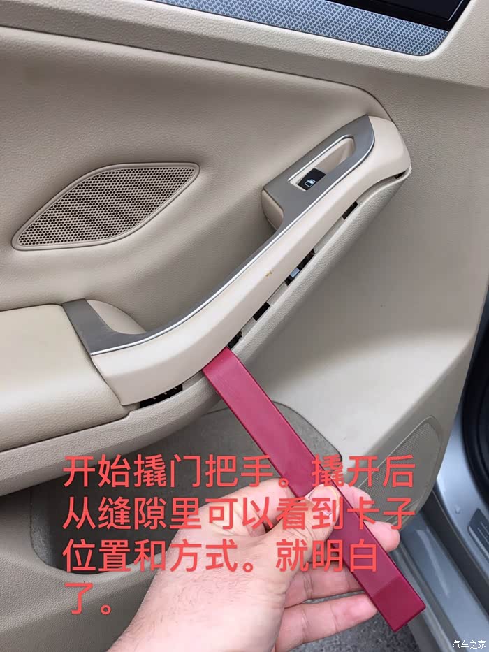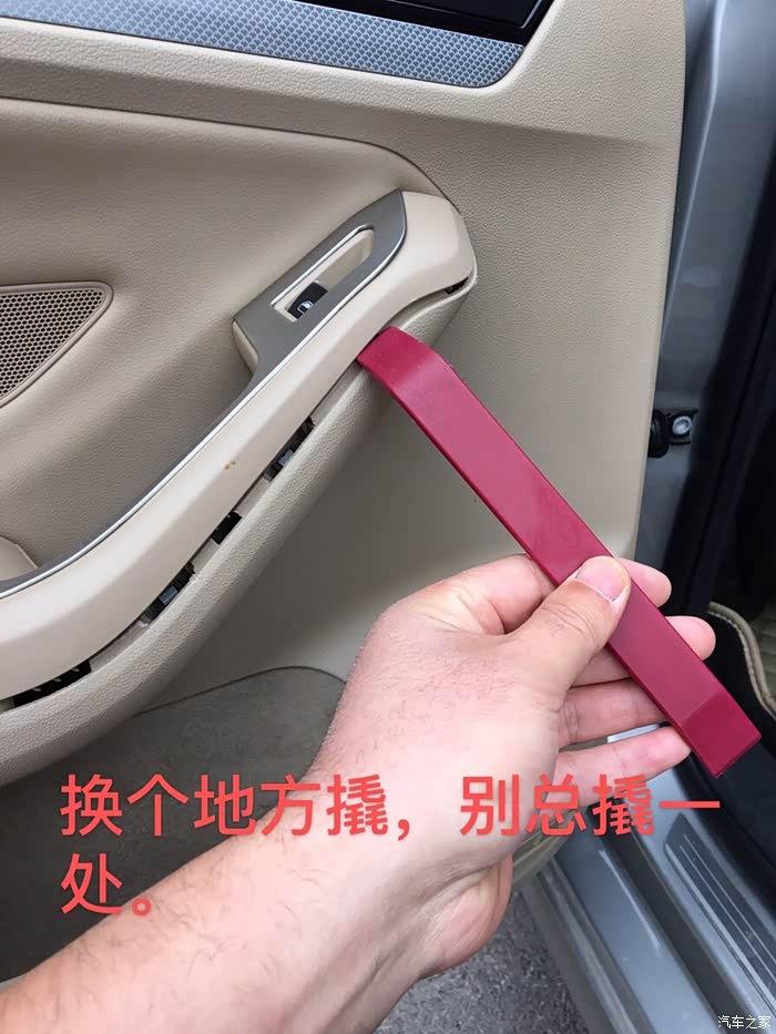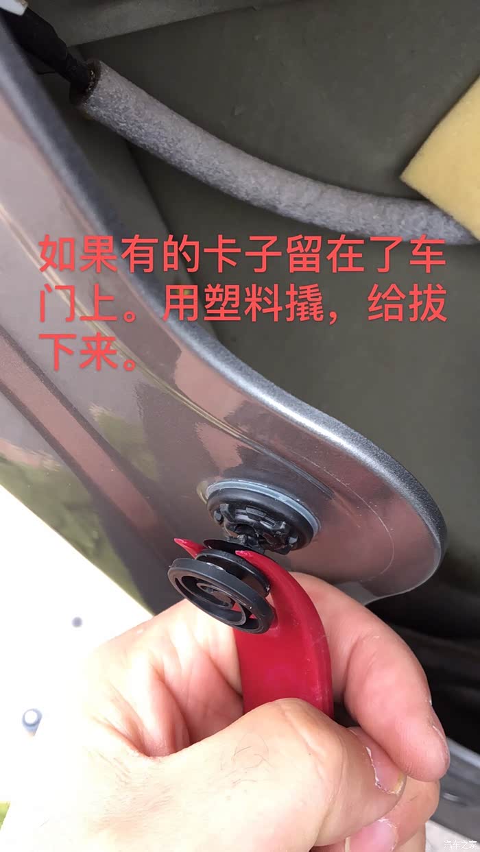 如果有卡扣留在车门上,再做这个事。塑料不好用,就用金属撬。