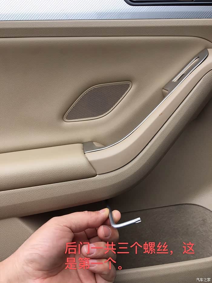后门三个螺丝,刚才拆了俩,这是第三个。这个螺丝和把手下面的那个螺丝一模一样。不用怕装错。