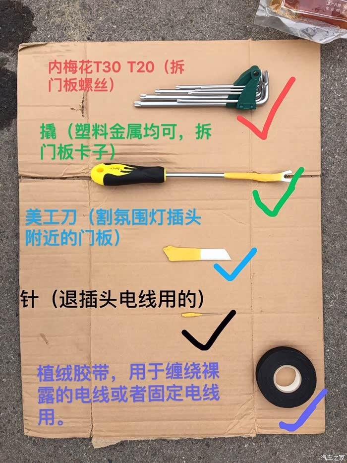 施工前看了很多车友发的作业,真心觉得不够详细。让人很容易糊涂,甚至会损坏东西。不过多少还是有启示作用,所以还是需要感谢他们。 我刚施工完,我整理了一下,希望这个作业会帮助需要加装的朋友。