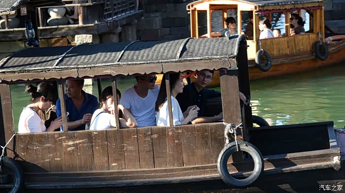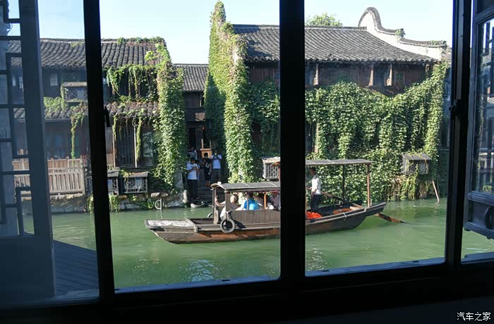 坐在凭河窗前,望着来来往往的乌篷船,尽都是坐满了游人。据说,以前有一些商贩在船上装满了日用百货和瓜果蔬菜沿河叫卖,两岸人家可随时开窗招呼,唤来商船选购物品。可惜现在再也看不见这样的场景了!