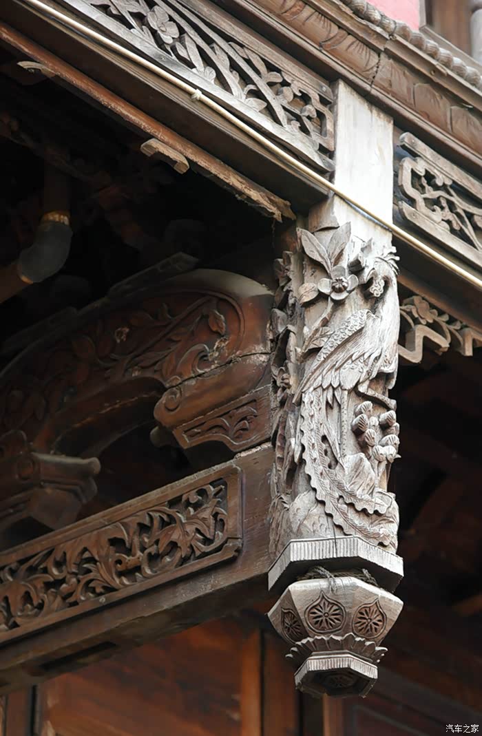 二层楼的木屋,雕龙刻凤,处处透着精美。