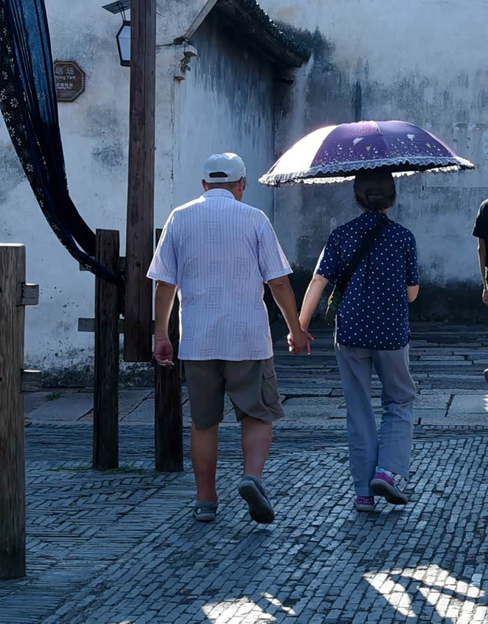 酷暑也挡不住这对恋人,或许是一对追逐过去时光的老人吧!祝他们永远浪漫!