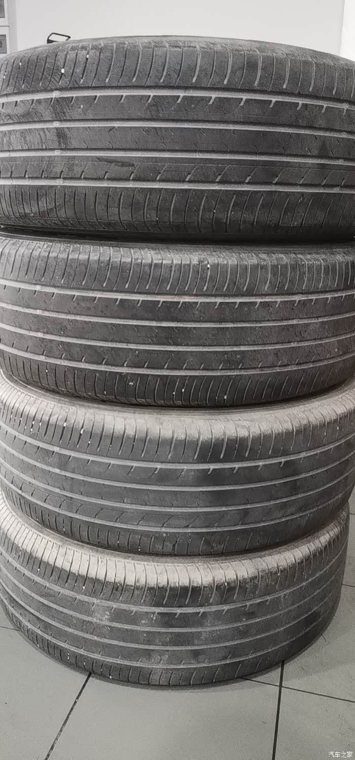 刚好要跑个长途,就把四个轮胎换了;这个是拆出来的四个旧版轮胎,感觉再跑一万也没问题,刚好途虎有活动,就一起换了,