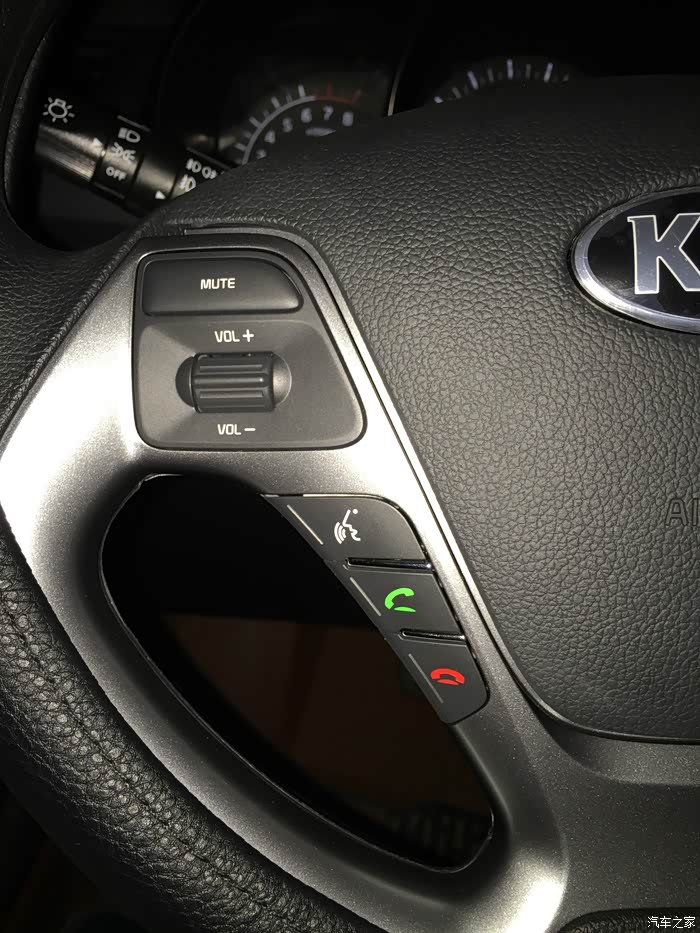 看看,安装好后的效果,低配车,安装高配方向盘功能键,我查了汽车之家 新款K2 的方向盘按键照片,都没有这个功能多,主要是蓝牙语音按键。