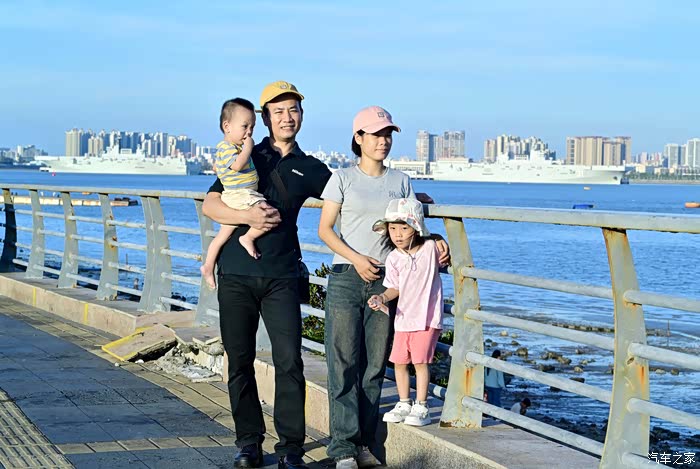 一家人在家乡湛江海边游玩,背景就是南海舰队的十里军港,那里停着31号海南舰和34号湖北舰