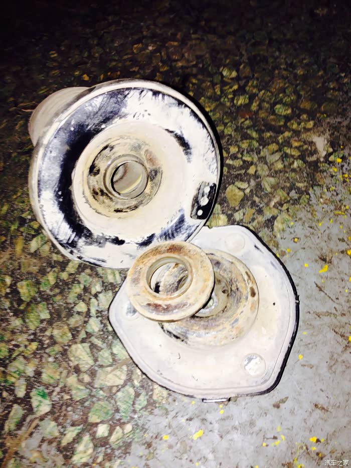 为了解决底盘异响怀疑有问题的都换了,就差避震了。前段时间在朋友那里买了全套避震和弹簧,今天终于有空了,换上朋友的前避震总成。拆下本车的避震和弹簧都没有问题,拆开才发现TMD就只是顶胶坏了,我的那个心啊拔凉拔凉的。不说了上图。顺便出原车弹簧和避震,这里说明下原来马6弹簧比现在的要粗,难怪原谅的马6转弯比现在的好,收朋友的是总成不然就用原来的弹簧了。