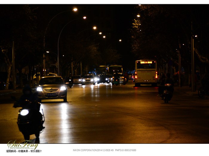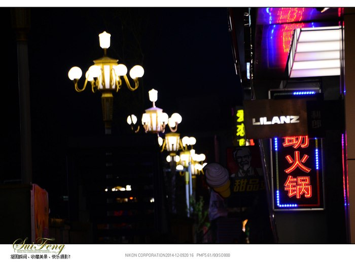 前晚(7号)在拍拍网下的单,2285元买的,卖家包快递费,顺丰快递很给力,结果今早(9号)就到了,于是赶快将镜头装上之前早就准备好的相机,迫不及待的拍了几张白天的,之后,在晚饭后又跑到街上去各个焦段的都拍了一张,发来给希望买这只镜头的网友做个参考,首先声明,此组照片除了按比例原图缩放,加框和显示参数以方便摄友们参考之外,没有进行过任何后期修改,保证是百分之百的原片参数,白天晚上的都有,以及傍晚弱光环境和天黑之后拍的,相机是D3100,拍摄时间精确到分,ISO,光圈大小,焦距都明明白白,测光方式三种都有,发来与各位交流,大家可以看看下面的参数,全部手持拍摄。