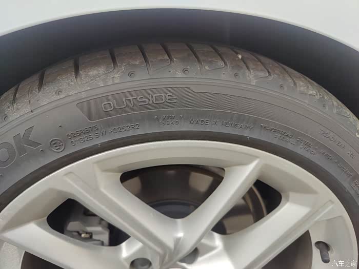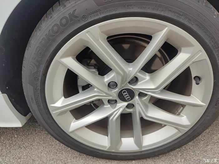 特别看了一下奥迪A5用的HANKOOK韩泰品牌的轮胎,这让我想起来我那辆红旗也是韩泰品牌的,不过我看了一下奥迪A5用的轮胎是匈牙利生产的这点和红旗不一样,轮毂尺寸是255/35 R19,轮胎看起来很扁很运动,但是应该只适合在城市市区道路行驶。