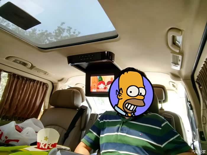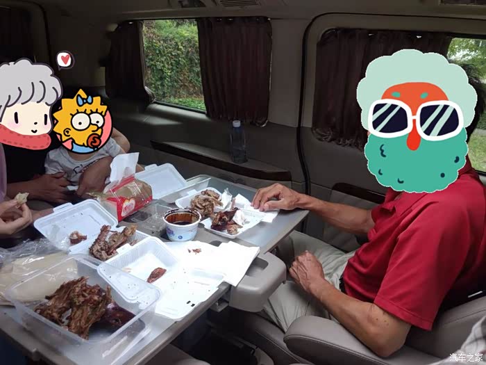 空间很大,桌板很实用。这是在车里吃烤鸭,还吃过肯德基之类的快餐和火锅,没错,停路边打开天窗吃火锅。