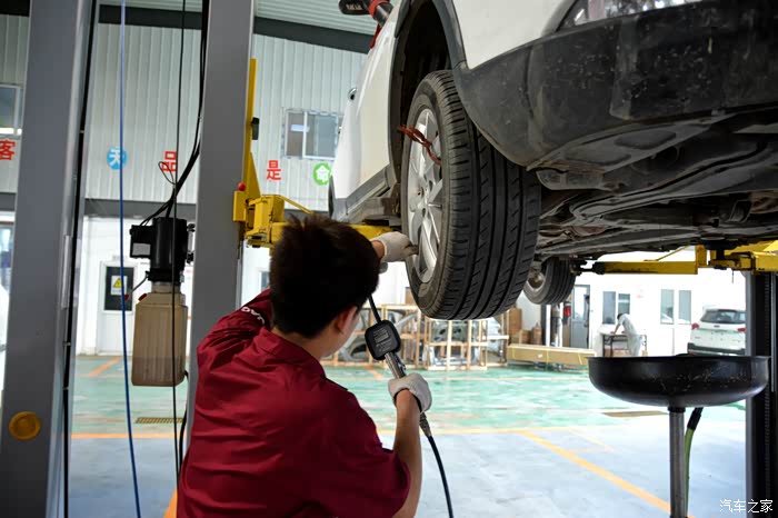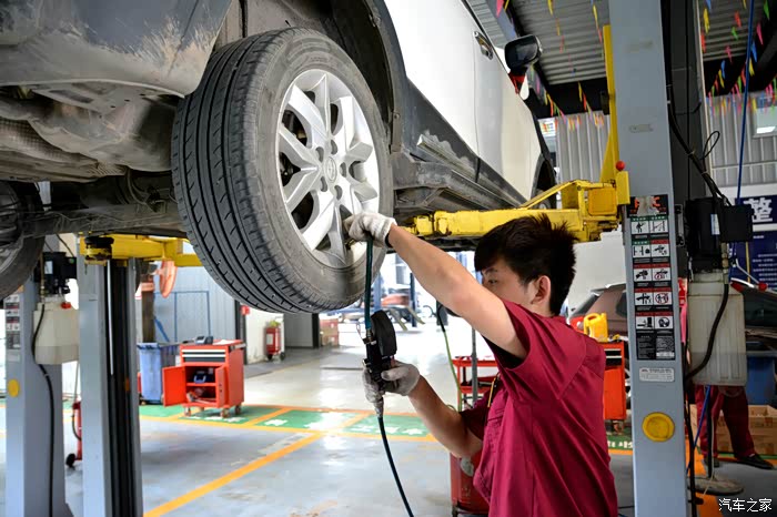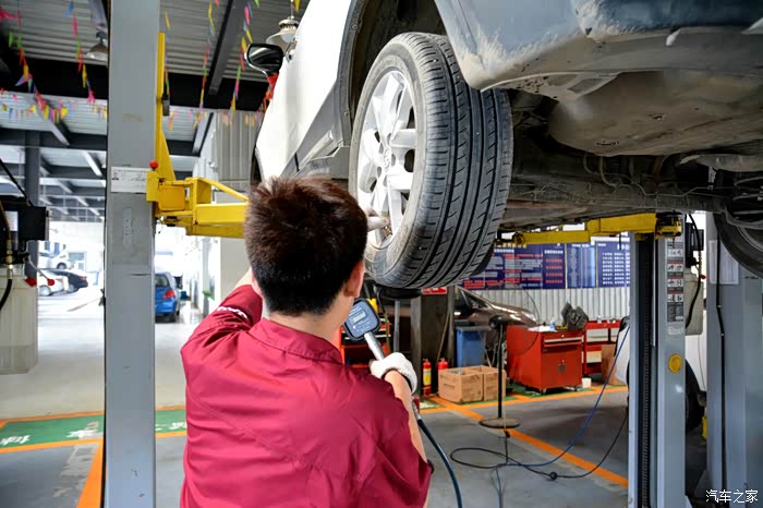 在放机油的空隙,维修是检测了下胎压,检查了下底盘螺丝,四轮轴承,全都没有问题。