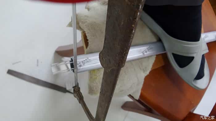 没有场地,没有老虎钳台,只好踩在椅子上嘎场,老婆开骂。