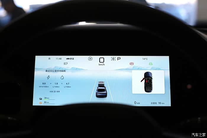 全新的动力分配以及能量回收管理,125KM旗舰型是由1.5T涡轮增压发动机和前置单电机组成的插电混动系统,1.5T发动机最大功率115kW(156马力),最大扭矩225N,加注92号汽油,电机最大功率为200kW,电机最大扭矩为315N·m,传动部分匹配E-CVT变速箱,使用了容量为17.6kWh的磷酸铁锂刀片电池,CLTC纯电续航里程125km,用于家用通勤、上下班代步等场景没问题,而满油满电综合续航里程长,补能次数少、开着省心,跑长途没有续航焦虑。