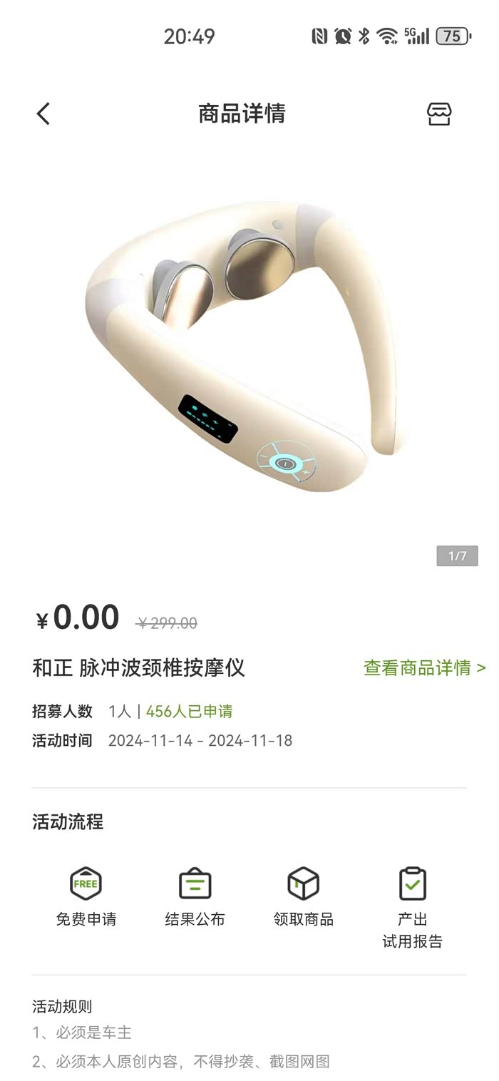 车主们可以踊跃去报名试用,这个按摩仪456个人里面,我居然中了,哈哈哈。。。。。