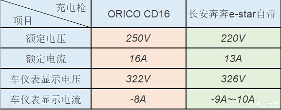 这里拿长安奔奔e-star自带的充电枪与ORICO CD16 做一下比较。