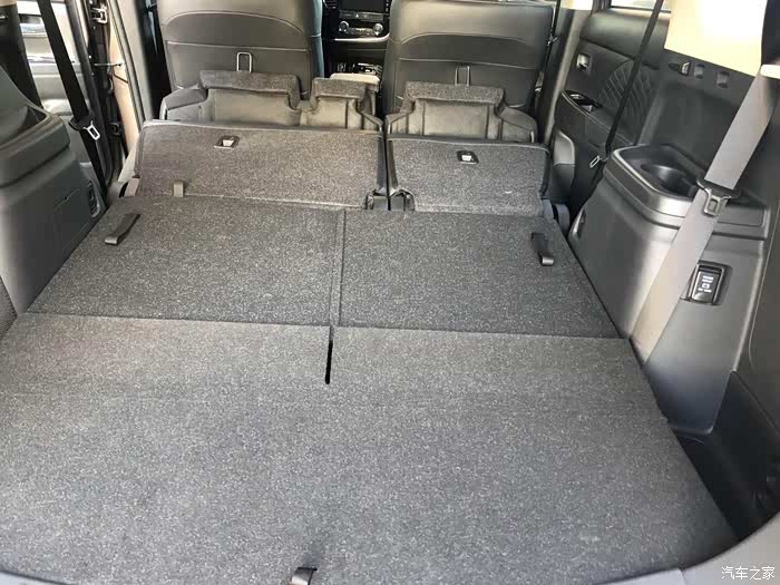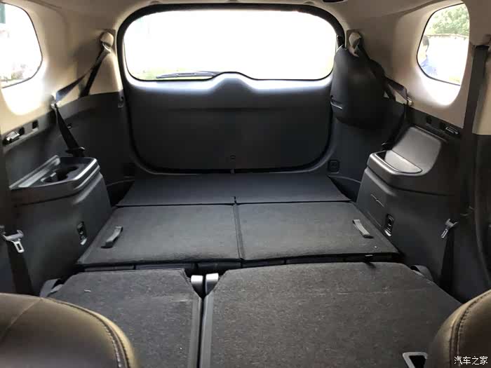 欧蓝德的第三排应急的时候可以用,用不上的时候可以放倒当做一个巨大的后备箱容积。