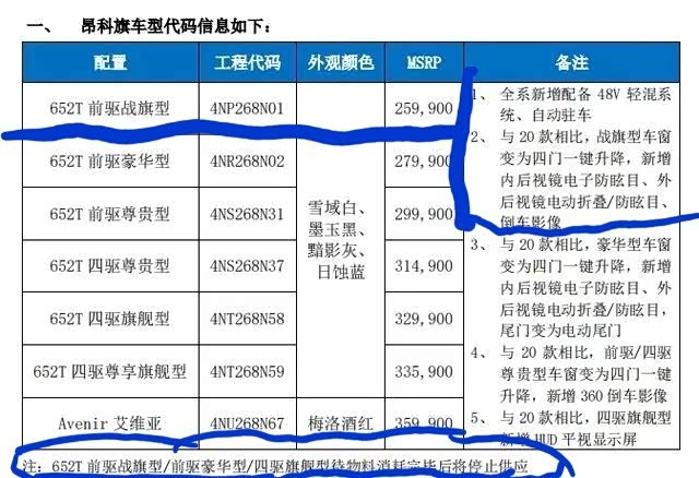 4S店给的22款战旗配置表,有意的可以去4S店问问。