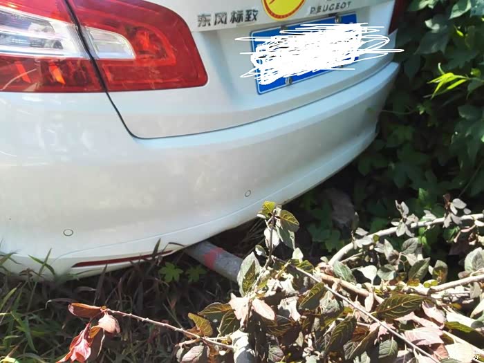 车滑到路边被树挡住了,正面照