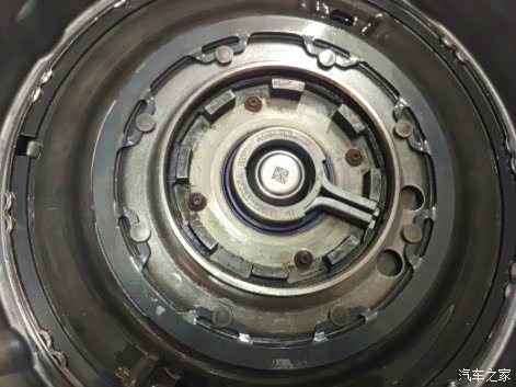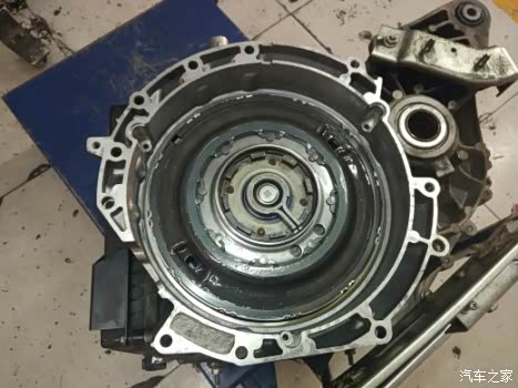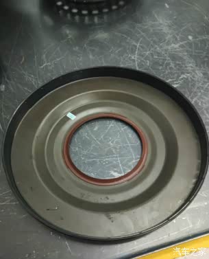 这个大卡簧固定的东西叫扭转减震器,漏油的根源就在这里,因为扭转减震器松旷导致和曲轴链接处前后窜动,但前油封只能提供颈项密封,对于轴向密封的漏油就无能为力了,所以我们只需要把扭转减震器的修包换掉解决前后的窜动就可以根治前油封漏油.这款变速箱福特致胜和三菱EVO也装备,同样也有漏油的问题,都可以用更换修包的方法解决.