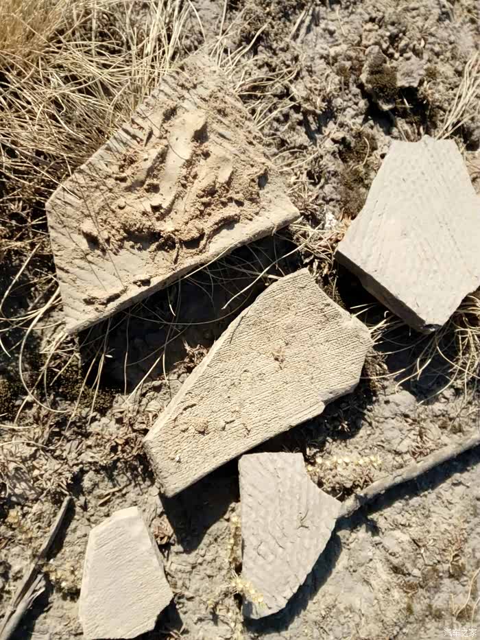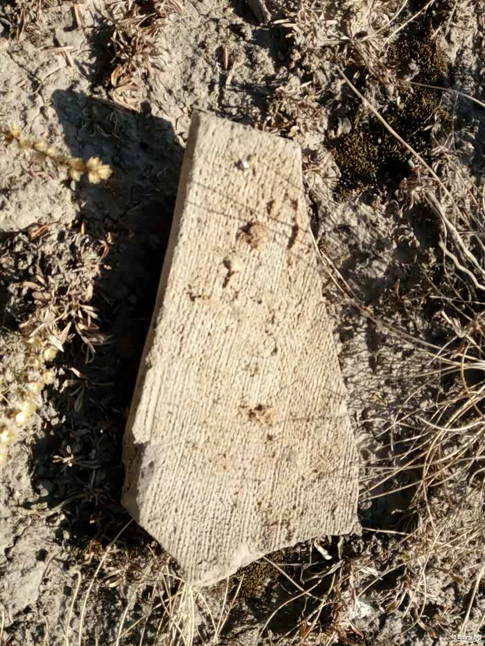 布纹陶罐,是唐朝以前的产物,应该是盗墓者从墓里挖出的,觉得不值钱,或已破碎,散落的碎片应该可以粘合成一个完整的罐。
