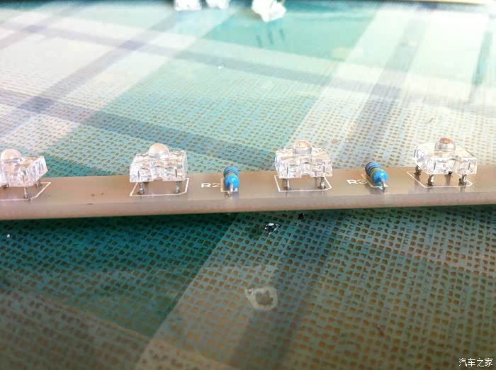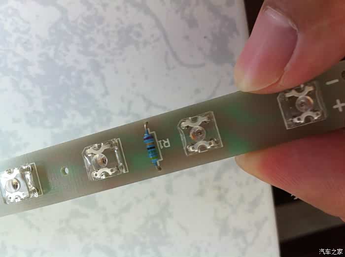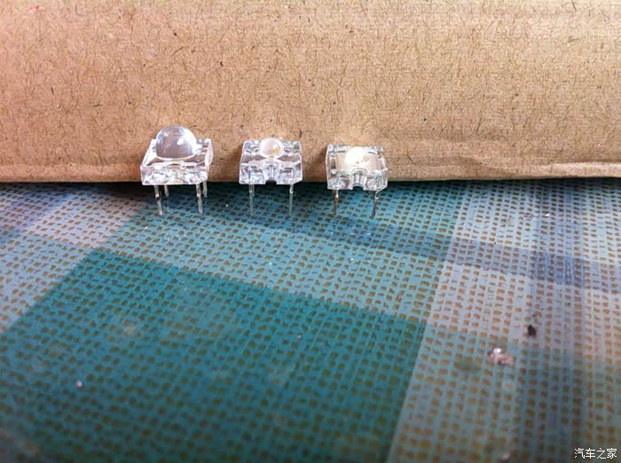接回车上,可能是不同批次、不同厂家的的原因,新换上的LED灯珠比原厂的还亮。照片里上面2个是原厂的,下面3个是新换的。