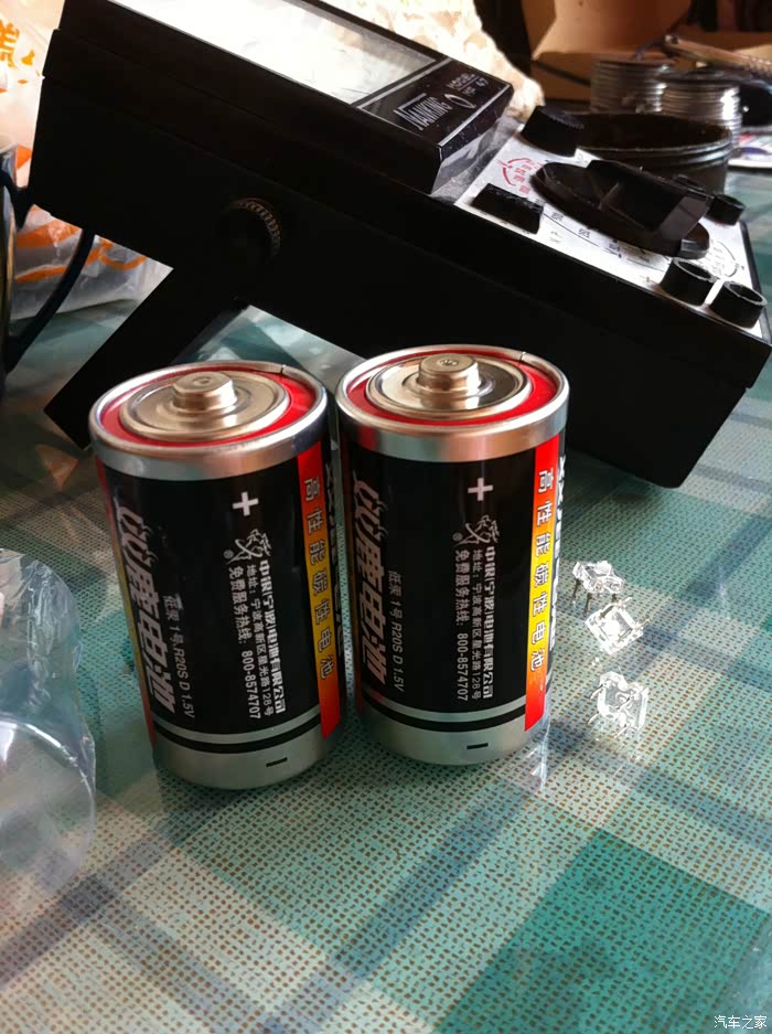 2节干电池串到一起,3V,灯珠基本上就正常亮度了(或者比正常还亮?),不知道灯珠的额定电压到底多少,也不知道车上供电是12V还是24V,在高位刹车灯电路板上看到串接了电阻进行降压,估计灯珠额定电压在1.5V~3V之间。