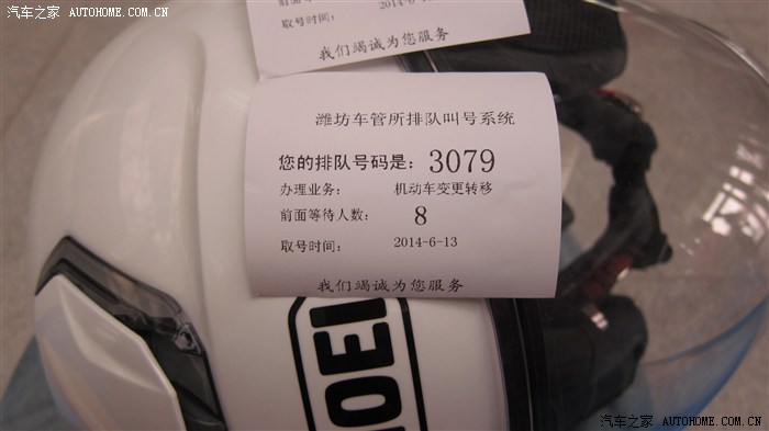再进入大厅前台,办理人员给我打印出机动车受理凭证,拿着这个就可以去机子前自选号码了。