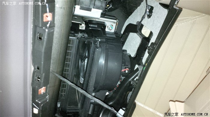 然后往斜下方拉手套箱,不太费力,就出来了。顺便说下,这个盖子应该先拿掉。