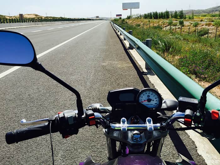 —————————————————————————————————————————————————————第三天,一大早出发,快到中午时,国道太烂了,我们走险从高速修路处冲了上去。这下可高兴坏了,第一次摩托车骑到高速上,一路100KM/H ,不敢跑太快了。高速还是快啊,下午5点就到了张掖市,下高速竟然没人管。