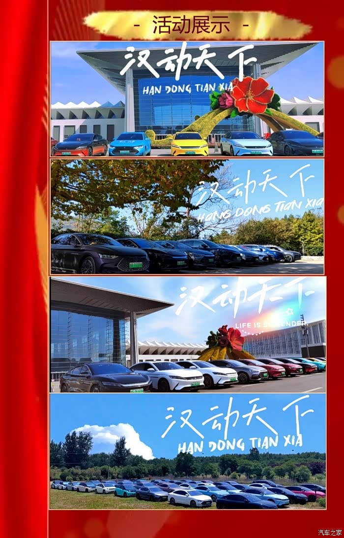 早上,我怀着激动澎湃的心情整装待发,光礼品就装了满满2辆车,顺利到达了年会现场。一进地库,我就被那一排排整齐的车子所吸引,气场拉满。各种汉唐车辆大家都整整齐齐地停在一起,真是太棒了!