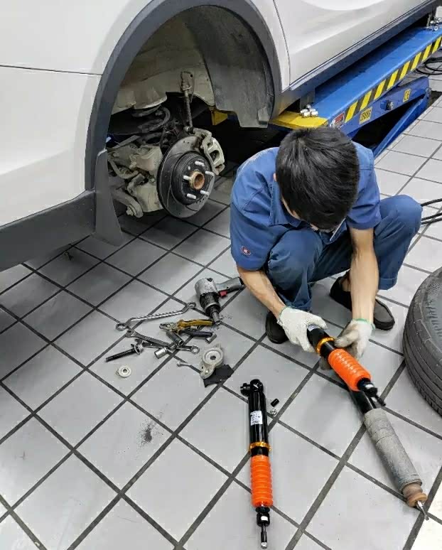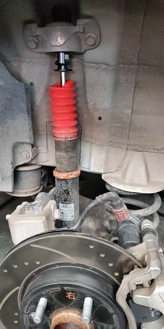 不多说,到货了之后马上让人安装。全部下来5300块。包括安装和4轮定位。首先声明一下,后面的弹簧是使用原车的。因为商家匹配的那个弹簧太硬了,对我们这个车不匹配。就是弹跳性比较高,舒适性很差。还是原车这个搭配这个减震筒是最合适的。所以这里就没有必要再多浪费六七百块钱了。前面的都是商家匹配非常完美。