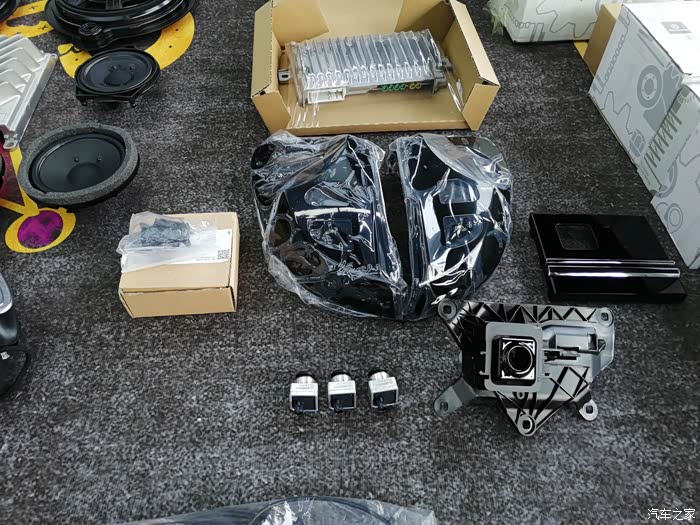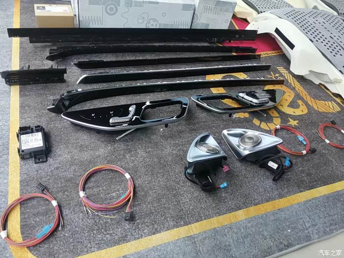 这代奔驰S级升级就简单的多了。只需要更换配件有:倒视镜底壳2个,360全景电脑,盾牌支架,小盾牌1个,摄像头3个,线材一套。