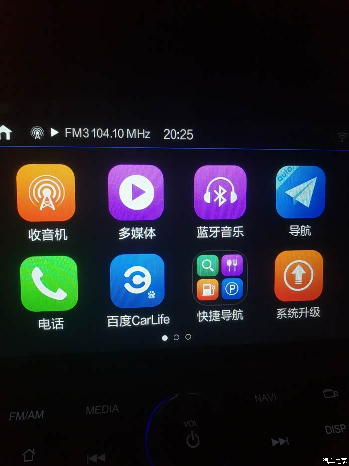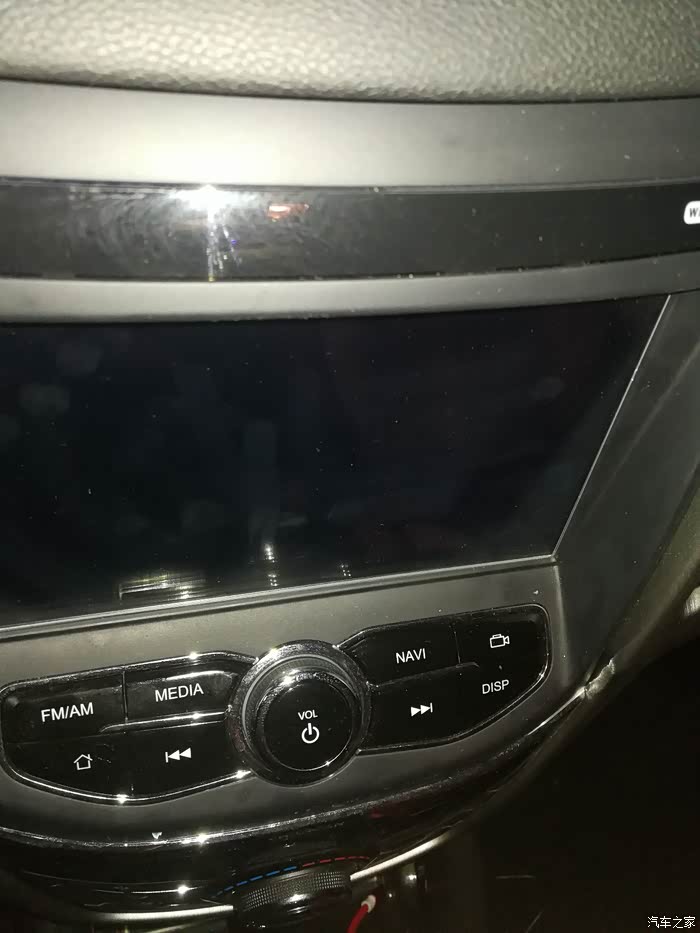 左边FM是收音机,MEDIA这个按键是多媒体系统内存和USB之间切换,NAVI按键是你在导航时想听音乐时按主页进入多媒体或者进入收音机或者MV,比方说你在看视频想看导航直接按一下就是导航,再按一下又返回到视频界面,只在这两个界面来回转换,画一个录像机的是右侧盲区监测摄像头手动打开,接下来一个小房子的图就是主页,中间的旋钮是音量大小,按下去就是静音,旁边的两个是上一曲下一曲,DISP按键是中控待机模式,按一下就是只显示时钟!