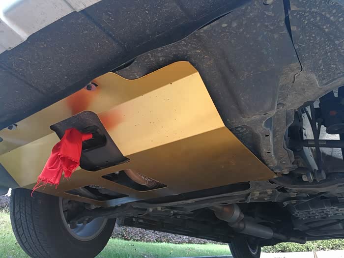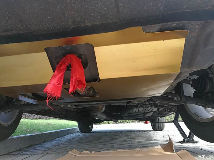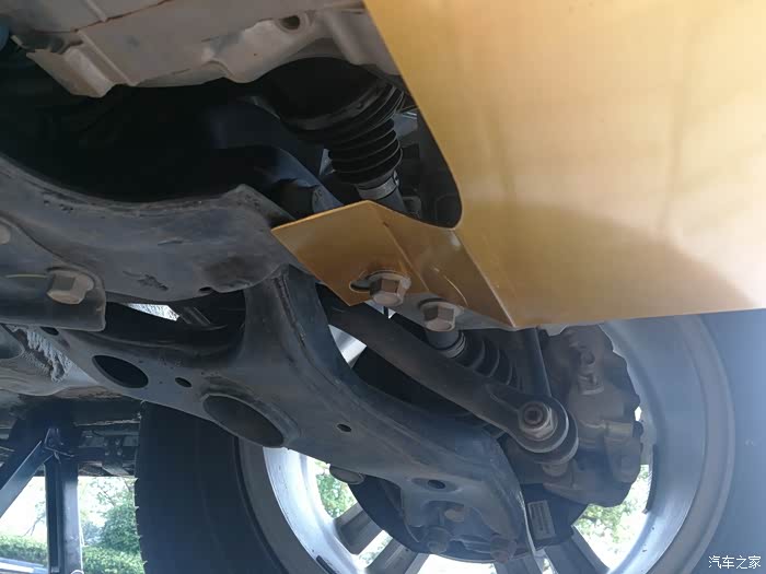 这是我安装的发动机护板,上路牙子另外一边用千斤顶顶起来,