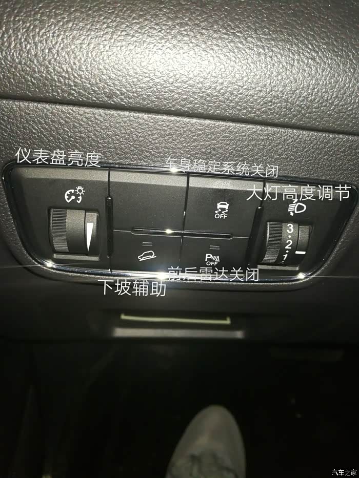 车身稳定系统每次启动车子是默认的开启状态,灯是不亮的,如果遇到泥巴路扒窝了需要关掉的话直接按一下亮灯就是关闭状态,仪表盘上也会显示off雷达就是车头和车尾的雷达检测,每次启动默认的是开启状态,如果不想听到滴滴的乱叫按一下灯亮了就是关闭状态,还是建议打开,