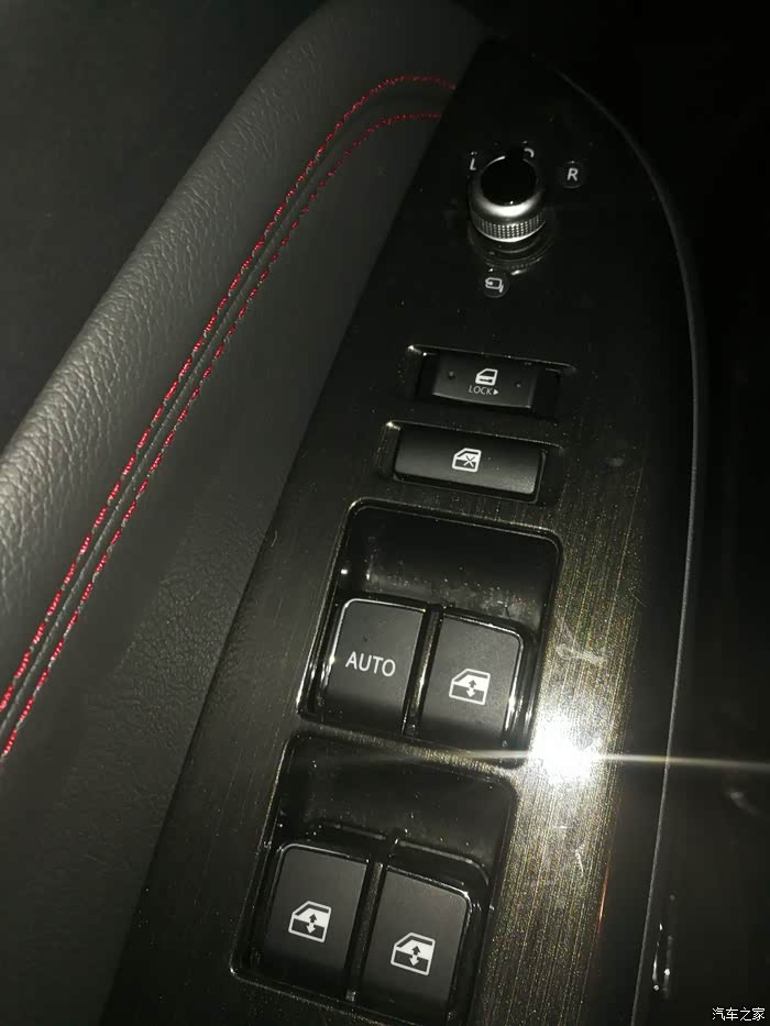 最头上的L是左倒车镜的调整R是右倒车镜调整,中间是关闭调整,指针指向那里上下左右掰调整,第二个左按右按lock是车门锁车和解锁,第三个是车窗锁止,按下去其他的门的车窗就不管用了!auto是主驾车窗升降,轻按或轻拉是点动状态到哪里松开窗户就到哪里停止,用力点有两声咯噔的声音直接松开车窗就是一直升到底,