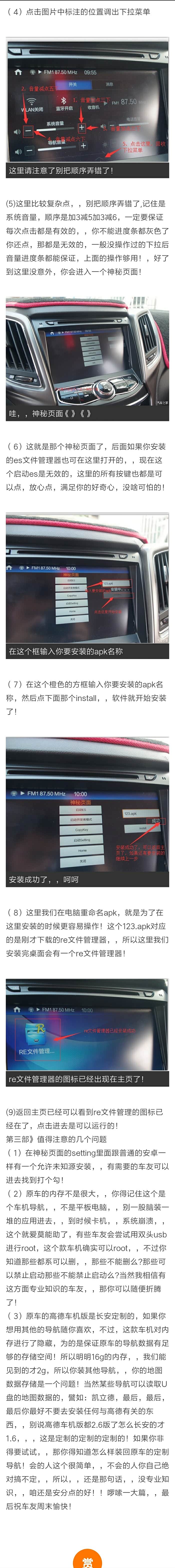 中控屏安装软件的教程,安卓手机们好装的软件这个都可以安装的,安装时不要要求太高了,毕竟不是手机,软件安装的多了会出现反应慢的情况,个人觉得安装一个视频软件和在线歌曲就可以了,QQ微信在车上用的少,ES和RE我在说明一下,这个管理软件可装可不装,不安装的话就按照这个步骤吧需要安装的软件重命名一下简单一点的,目的是好记,记性好的也可以不用重命名,或者拍照到车上照着一字不漏宝骏符号输进去,这两款软件是管理系统软件的,相当于是手机助手一样,后期U盘里下载的安卓软件在里面直接安装不需要,ES安装好以后主页不会出现软件的图标,每次车子启动或者插入U盘就会自动出现一个打开这个软件的界面提示,时间久了感觉有点烦,但是管理挺好用,就是进去菜单后退不出来的情况发生过好多次了,遇到这种情况不用急,停车熄火让中控断电半小时左右再启动就正常了,ER软件有图标,功能没有前者多,不过稳定,目前已经换成这款了,没有出现司机情况,都不装也可以,神秘界面图来自之家论坛,本人学习后根据上面容易出错的地方总结后在分享出来,本人实验了三辆车,各种方法实验下来的方法!
