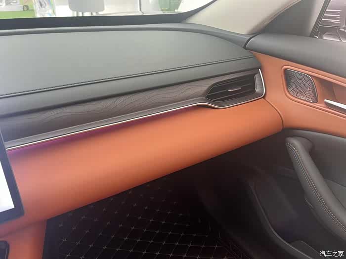 用了橙色的配色以后,车里哪儿用了软包、哪儿是搪塑、皮革看得清清楚楚。