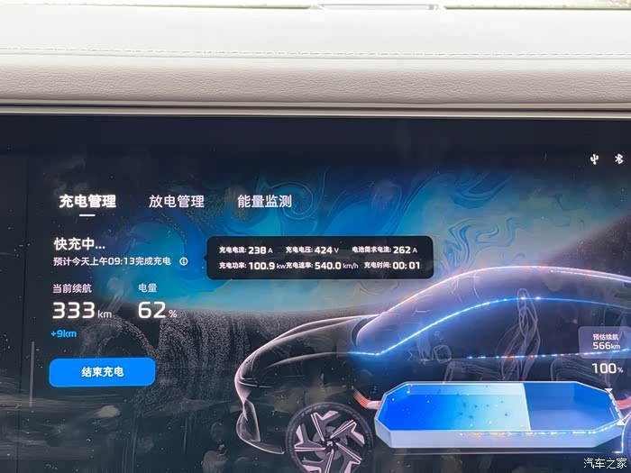 我这台R7是90度的电池,我一般都是从15%充到95%就拔枪走人了,三元锂电池尽可能不要满充满放。实测下来在前80%左右都能稳定在100kW的峰值功率,整个充电过程也就1个小时的样子,所以我平时都趁着公司午休的时间下来给车子充电,现在我就很喜欢躺在副驾驶把腿拖升,打开座椅按摩起来美美睡一觉,或者在车上看看电影办办公,一晃眼的功夫就充完电了~