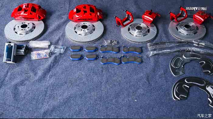 配件清单:原厂AMG前六活塞x2、原厂AMG后单活塞x2、原厂刹车盘x4、原厂后卡钳支架x2,原厂前护板x2,原厂油管x2,endless刹车皮一套,原厂刹车油x2