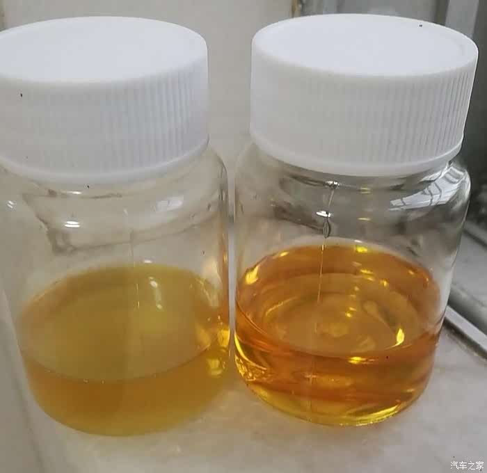 左边(浑浊)是天猫胜牌旗舰店买的星皇5w20.右边(清澈)是起亚4s店购买的合成5w20。室温大概是20度左右。