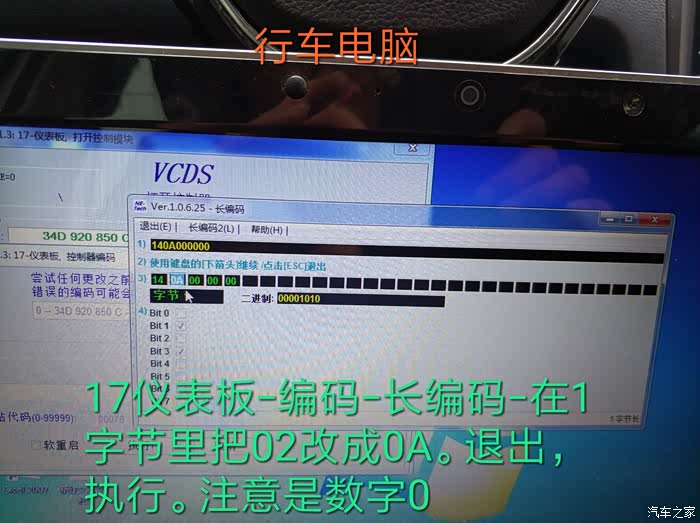 先刷行车电脑。修改长编码之前最好备份下最简单方法就是手机拍照