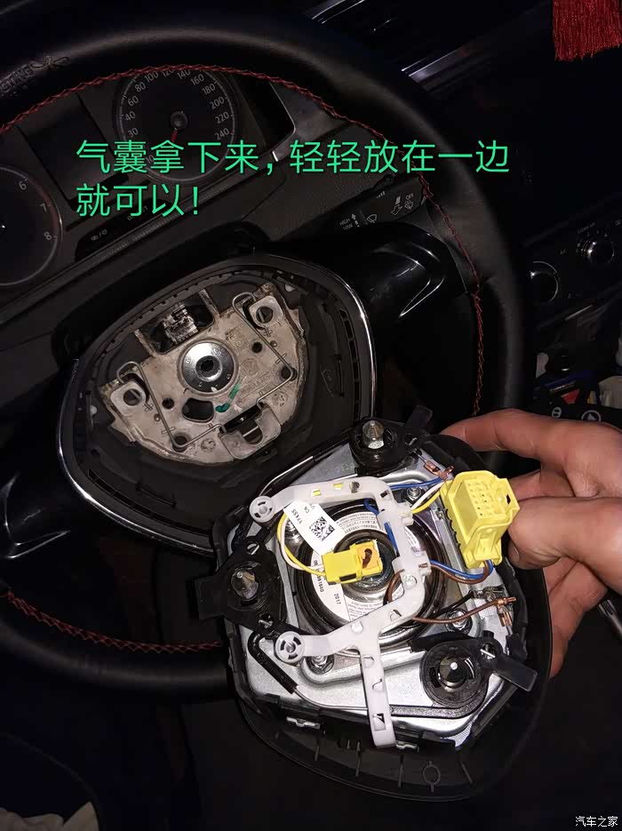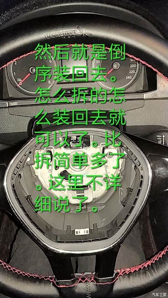 先说下大题流程:拆气囊-拆方向盘-拆游丝-拿掉手柄总成-换上新手柄-拆左边空调面板(13款不用拆)-拆仪表盘-从右手柄插口接线到仪表盘后面-组装-刷隐藏