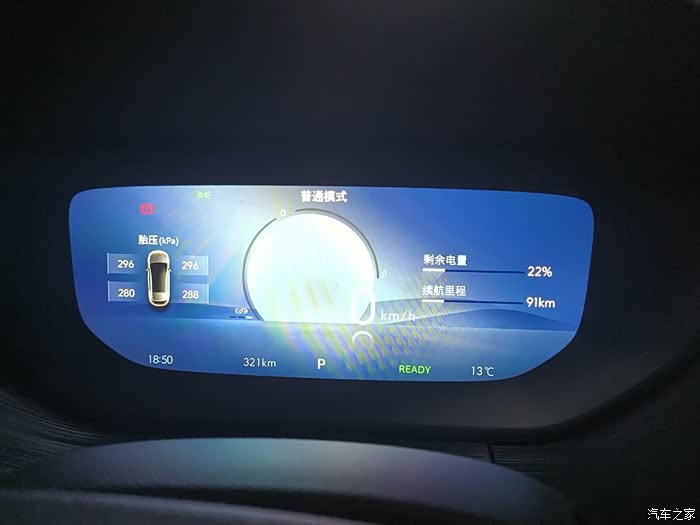 1月11日提车时里程6KM,在4S充满电后开回来,两天开了315KM后,剩余22%的电量,剩余可续航91KM。坐标温州,行驶道路是国道加城区道路,部分路段拥挤