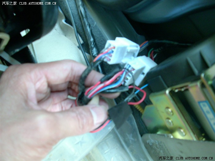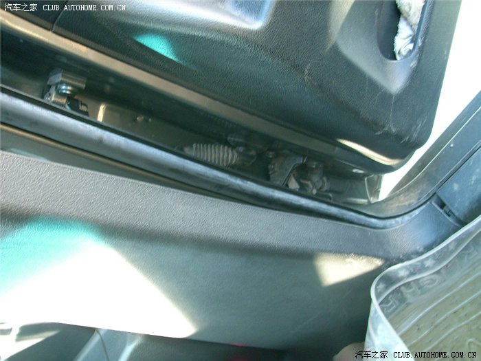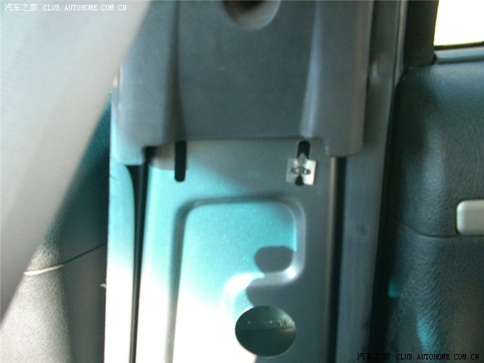 开始拆卸,很简单,不用拆门,把车副驾驶坐前移,拧开B柱下边两个螺丝,把内面板拆开,就可以看到里面的线束了。
