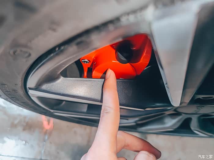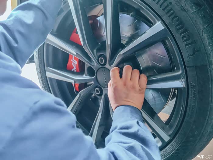 卡钳离轮毂只有几个毫米的间隙,完美!左右方向打也不会蹭到。专车专用确实做到了原装位安装