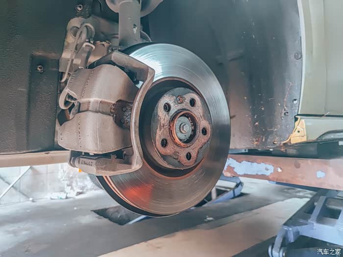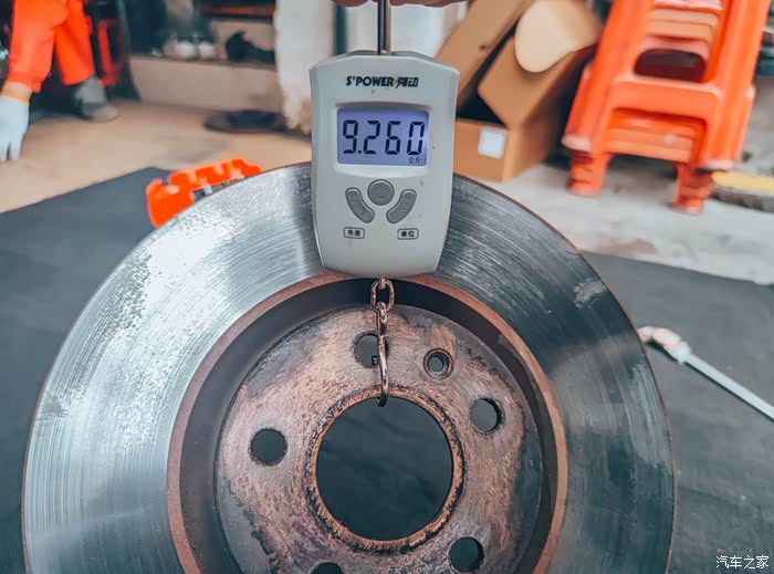 看看这原厂盘的重量,都已经使用好几年了,这刹车盘的重量居然在啊9.26公斤。这不是一般的重啊