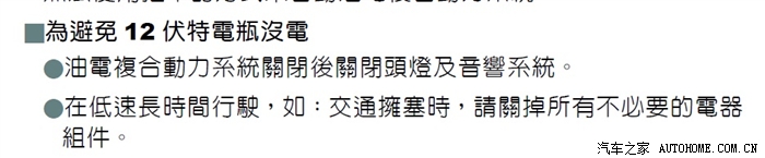 说明书上说, 为避免12V电池没电 , CT低速长时间行驶,如交通拥塞时,请关闭所有不必要的电器。