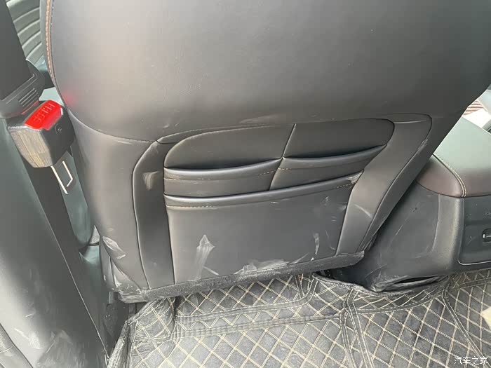 前排的座椅靠背往里凹进去,三个大小不一的储物袋。