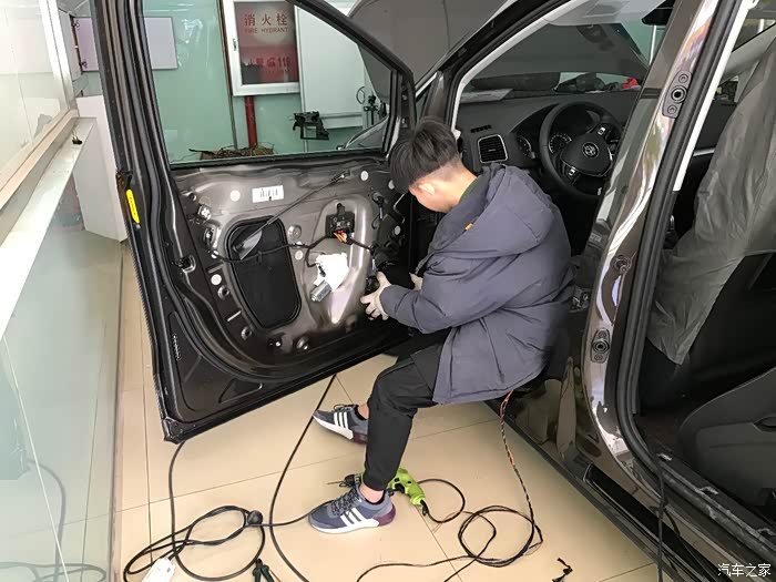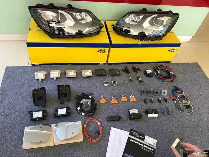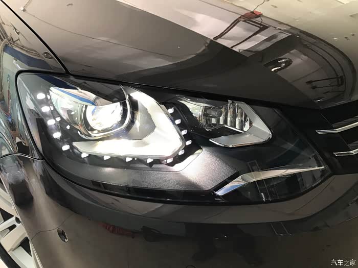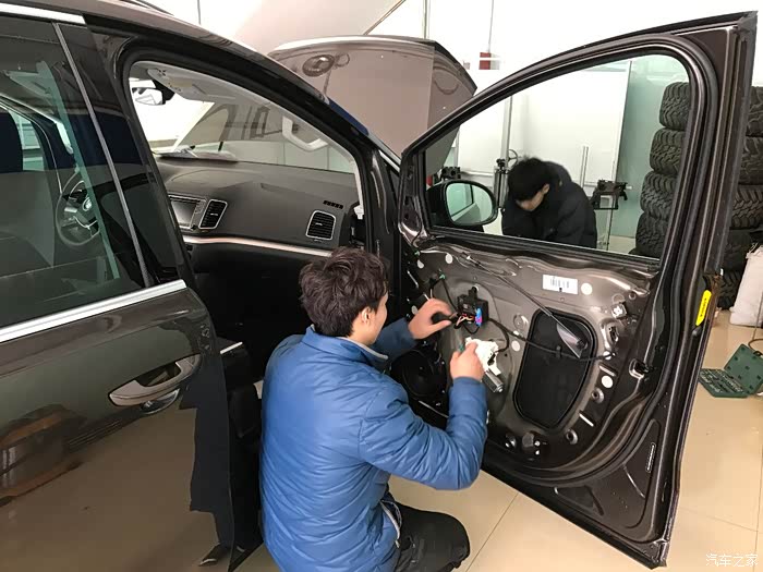 接下来就是改装了,五方天雅那家改夏朗不少,价格吧我人笨也没有仔细谈,应该不算太好,也不算太差,几个技师也干了一天半才搞定我的项目,我也就不琢磨价格的事儿了。根据前期的了解,决定改原厂氙灯、二代泊车、二代胎压、并线辅助、踢脚灯、门灯。周日开过去,周一中午才弄完开走。